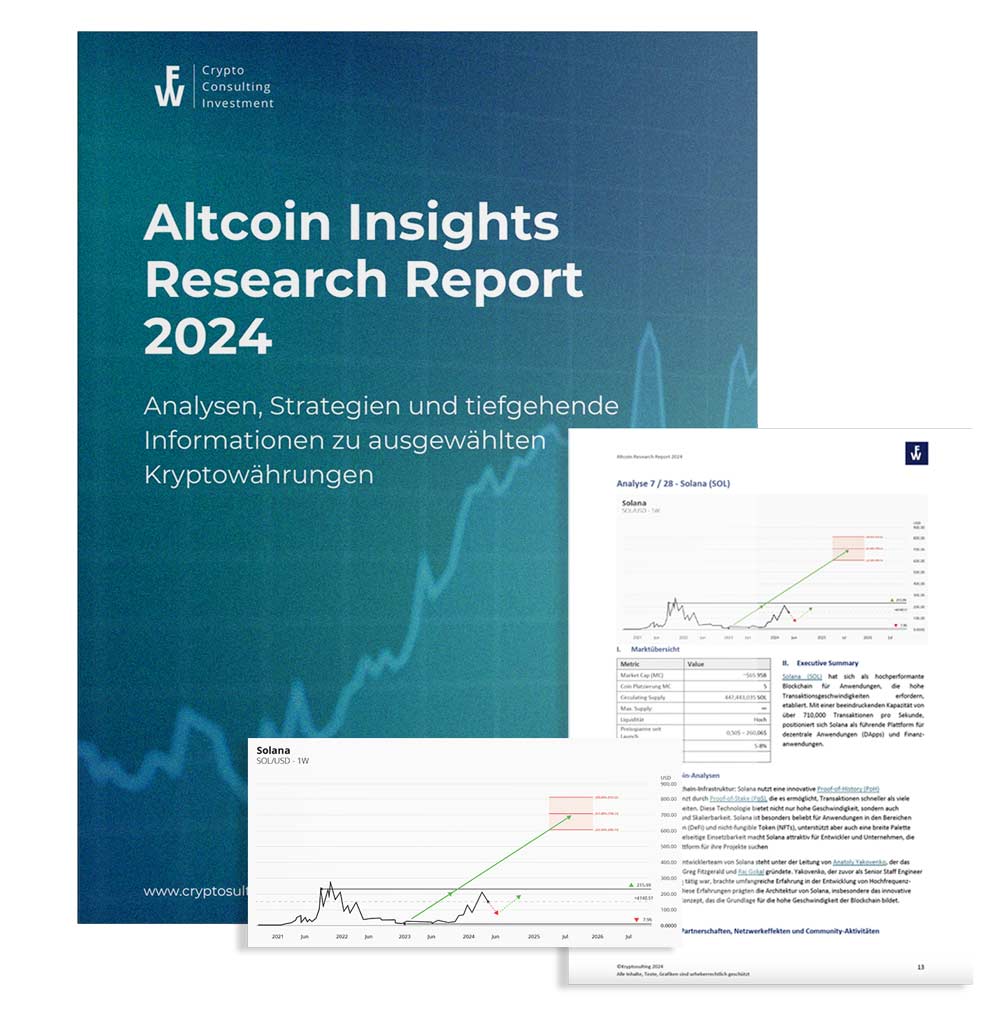 Laden Sie den kostenlosen Probe-Report zu Solana herunter und entdecken Sie den detaillierten Aufbau und die Struktur unserer Analysen. In diesem Beispiel sehen Sie, wie wir fundamentale und technische Bewertungen kombinieren.